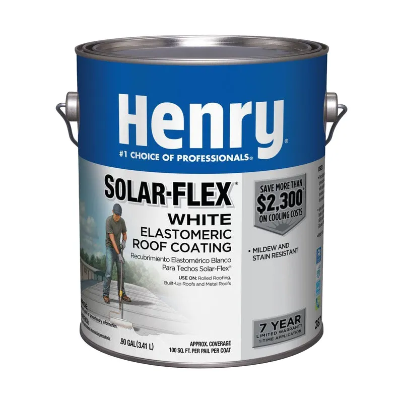 +Elastomeric, water-based, acrylic latex coating. Highly resistant to disbonding, chalking, mildew, and discoloration. Bright white with excellent hide . Lowers roof and interior temperatures. Prolongs roof life. Reduces air conditioning costs. Recommended for: Well drained surfaces which do not pond water, well adhered weathered previously coated white or aluminum roof surfaces, mineral surface cap sheet (conventional, SBS, or APP), smooth surface, stucco, parapet walls. Can be applied to a dry or slightly damp (not wet) surface. For use on a properly drained roof. Apply 2 coats. Allow to dry between coats. 7 year warranty